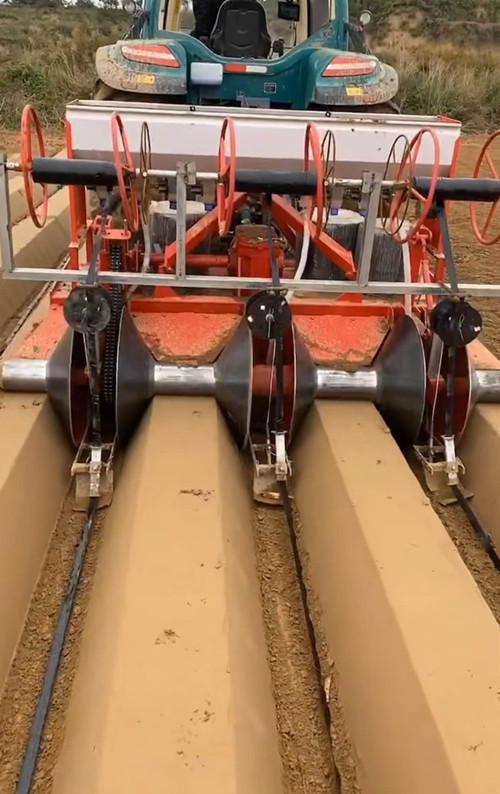 魯富牽引試大蔥鮮姜開溝機,新型雙開溝型開溝機,開溝深度可以達到40CM,開溝效率是人工的幾十倍,是小型挖掘機的幾倍,開溝效率非常高。開溝兩側側壁非常整齊,保證后期種植的各種條件,提高種植效率。懸掛于各種農機車后方,均可穩定開溝,開溝深度穩定高效。是種植大蔥鮮姜等作物開溝方式和工具。